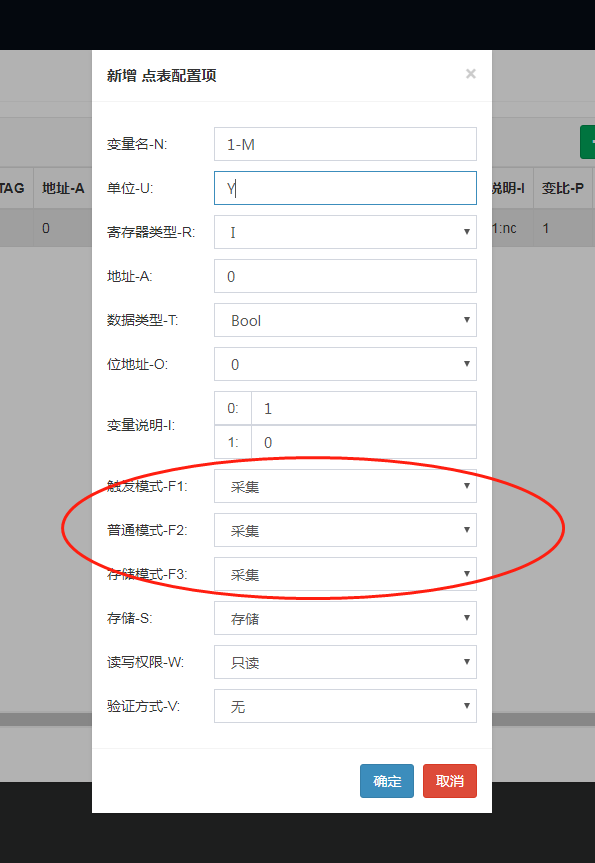 2. 点表中采集模式是否设置都为“不采集”,采集模式选择应是“采集。